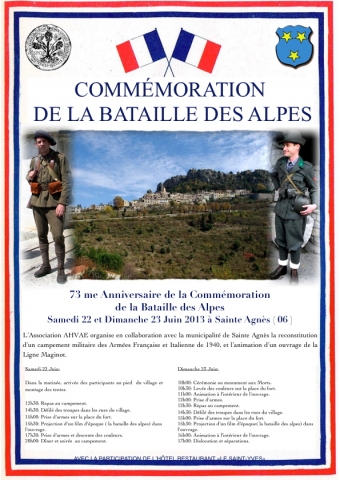L’Association AHVAE organise en collaboration avec la municipalité de Sainte Agnès la reconstitution d’un campement militaire des Armées Française et Italienne de 1940, et l’animation d’un ouvrage de la Ligne Maginot.