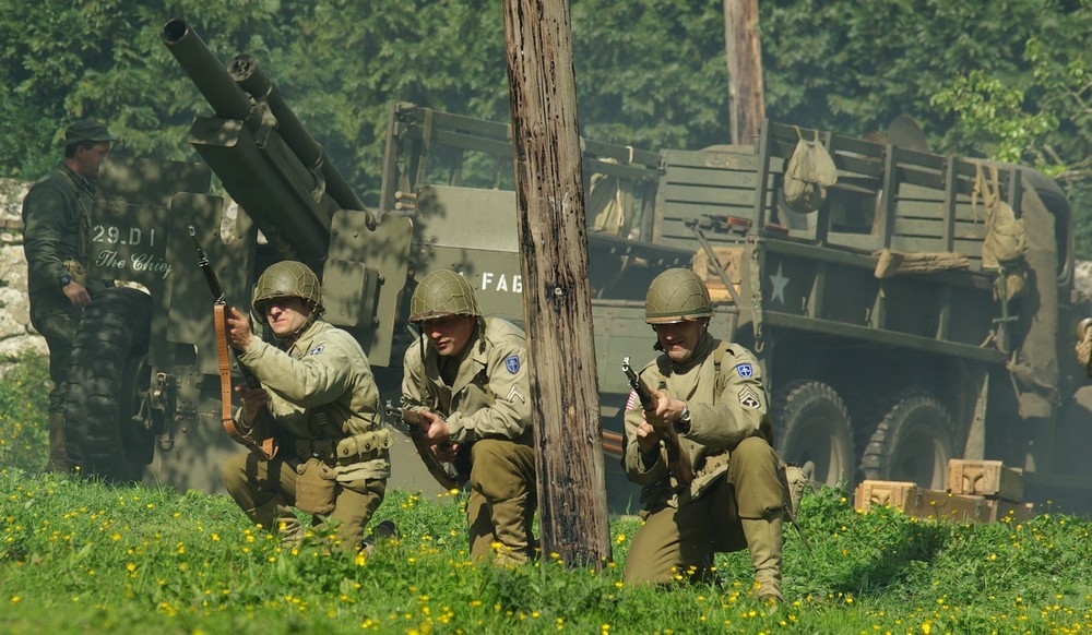 Reconstitutions de campements de la seconde guerre mondiale, alliés et allemand.